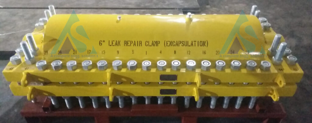 Aditya steel Engg. Co. Encapsulation leak repair clamps are required to encapsulate leakage in pipeline without Shut Down to To Encapsulate Leaking Flange Connection and To arrest leakage of different fitting like Reducer, Insulator joint, Vent, Pressure gauge connection set, to arrest leakage of Insulating Joints, To Encapsulate Leaking Clamp mounted on pipeline